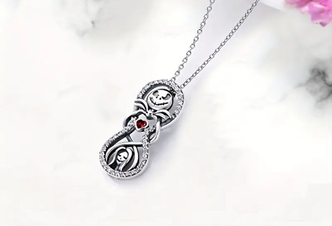 Gorgeous Rhinestone Skull Pendant Necklace - Perfect Gift for anyone that loves the Nightmare Before Christmas. Pendant is 1.07 inches long and 0.48 inches wide.